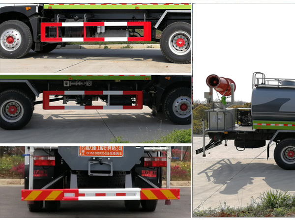 其它 | 1、罐體總?cè)萘?9.67立方米,罐體有效容積:9.21立方米,僅選用3950mm、4500mm及4700mm軸距底盤改裝。整車長度(mm)/軸距(mm)/后懸(mm)/離去角(°)/罐體外形尺寸(長×長軸×短軸)(mm)的對應(yīng)關(guān)系為:7770/3950/2560/11/4000×2150×1570,7770/3950/2560/11/4300×2150×1480,8580/4500/2820/10/4800×2150×1330,8780/4700/2820/10/5000×2150×1280。選裝前電子霧炮前伸(mm):500。整車長度(mm)/軸距(mm)/后懸(mm)/離去角(°)/罐體外形尺寸(長×長軸×短軸)(mm)的對應(yīng)關(guān)系為:8270/3950/2560/11/4000×2150×1570,8270/3950/2560/11/4300×2150×1480,9080/4500/2820/10/4800×2150×1330,9280/4700/2820/10/5000×2150×1280。 2、側(cè)防護(hù)及后下部防護(hù)裝置均采用Q235B材質(zhì),均采用螺栓連接,后下部防護(hù)尺寸:150×50(mm),離地面高度480mm。3、ABS系統(tǒng)生產(chǎn)廠家,型號:焦作博瑞克控制技術(shù)有限公司,J ABS。4、專用裝置:罐體,主要用于路面灑水及園林綠化。5、隨底盤選裝底盤布局。6、選裝電子霧炮,選裝立式水冷霧炮機(jī)組、自流口和后對沖,選裝大平臺的高位花灑、臥式水冷霧炮機(jī)組,選裝霧炮樣式,選裝主管道樣式。7、選裝涂裝,選裝T6涂裝,選裝不帶噴霧機(jī)組大平臺,選裝前沖萬向鴨嘴樣式,選裝腰沖位置,選裝前沖,選裝箭頭指示燈,選裝氣動閥,選裝上走臺樣式,選裝不帶炮管箱,選裝塑料輪罩,選裝尾部排沖。 | ||