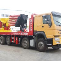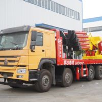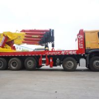 該車設(shè)有吊臂,轉(zhuǎn)臺,支腿等固定裝置,通過吊臂的伸縮完成吊裝工作;該車行駛時(shí)可不帶副臂,配重,吊鉤,支腳盤,備胎架等,上裝起重機(jī)型號CLW6000,選裝起重機(jī)外形變化; 防護(hù)材料:Q235A碳鋼,連接方式:左右側(cè)面防護(hù)與平板底部采用焊接連接,后防護(hù)與裙邊機(jī)構(gòu)相干涉,故后防護(hù)可豁免,后部離地高度為480mm;總質(zhì)量為50000kg,故側(cè)翻穩(wěn)定角豁免;ABS系統(tǒng)型號為4460046300,生產(chǎn)企業(yè)為威伯科汽車控制系統(tǒng)(中國)有限公司,選用輪胎12.00R20,層級20PR。
