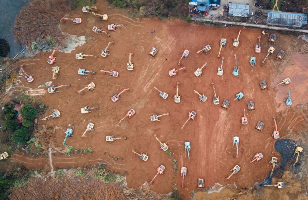 1月24日,火神山醫(yī)院開(kāi)建,大型機(jī)械加緊施工。