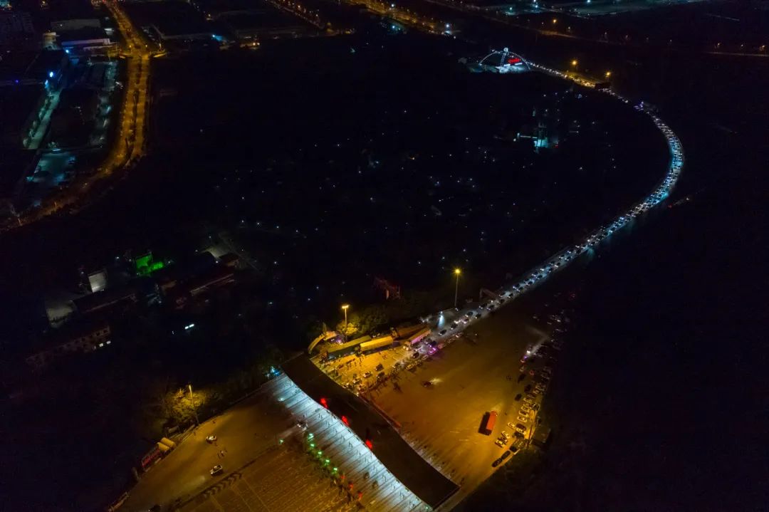 3月24日,在武漢西高速收費(fèi)站交通卡點(diǎn),返漢車輛排隊(duì)等候入城。