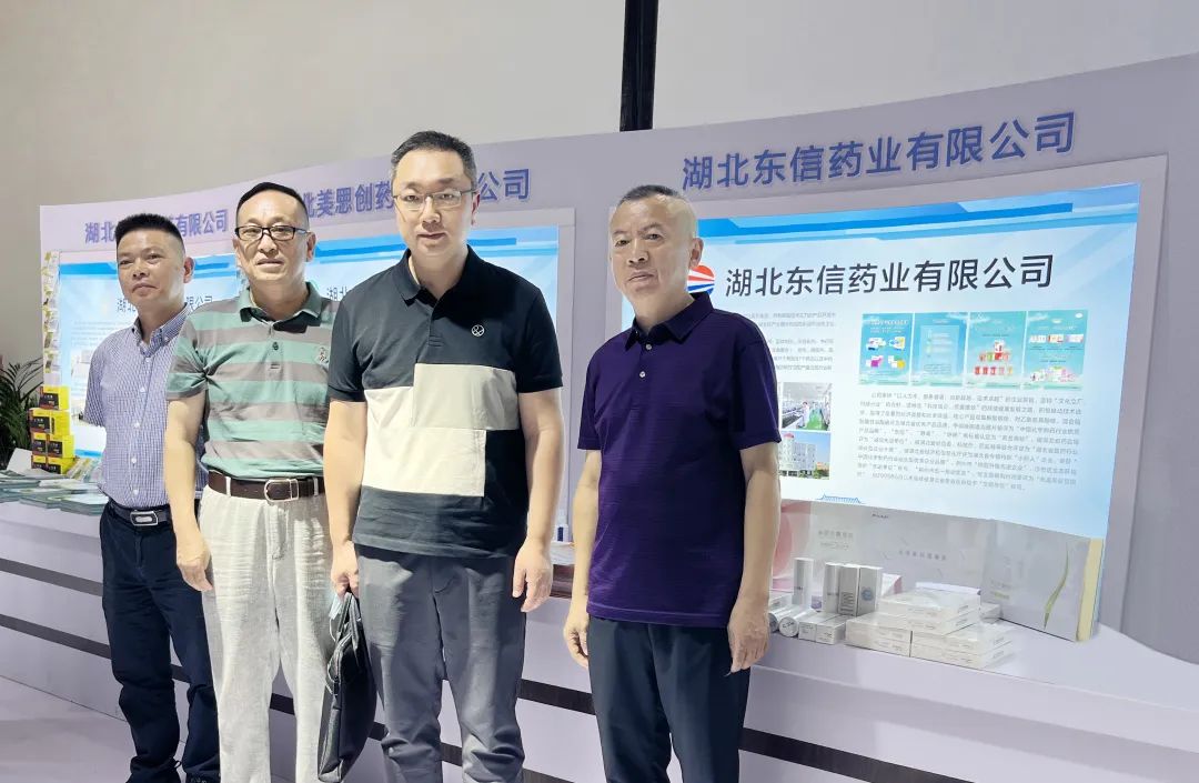 下圖:東信醫(yī)藥集團相關(guān)領(lǐng)導(dǎo)在博覽會現(xiàn)場
