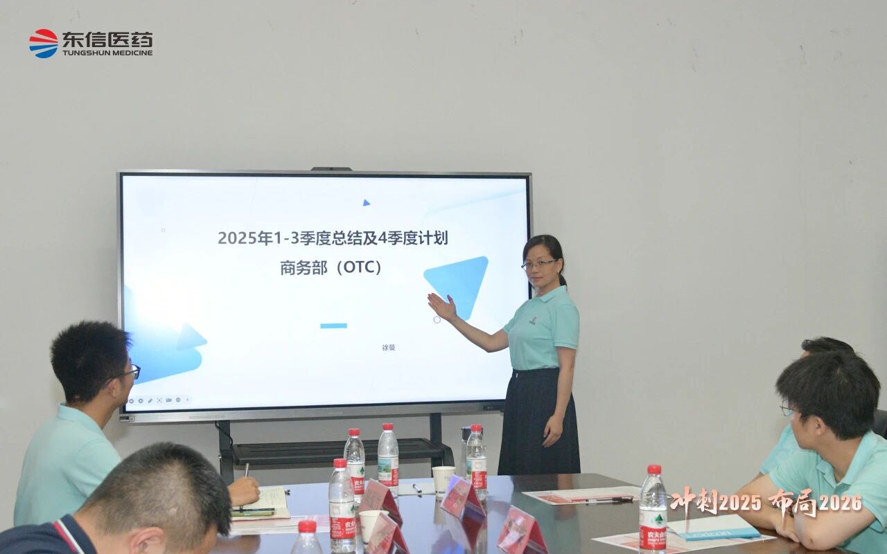 會上,銷售部副部長何韶華聚焦OTC板塊,詳細匯報了四季度的總體工作思路、核心銷售指標、重點產品銷售策略及市場開拓計劃,為OTC板塊沖刺階段的工作開展提供了清晰指引。銷售部部長黃志雄、蔣文分別針對南區、北區前三季度的銷售成果進行復盤,深入分析工作中的優勢與不足。圍繞“沖刺2025,布局2026”的會議主題,匯報了四季度的沖刺舉措與重點工作計劃。