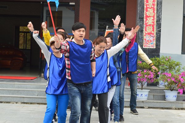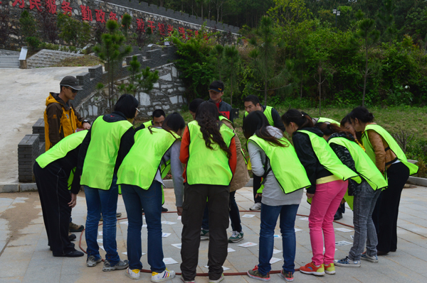 “只有團隊的力量才能達成目標,創(chuàng)造奇跡!”負責(zé)此次拓展訓(xùn)練的教練用這樣一句話拉開了本次活動的帷幕。教練首先通過全體參與“粘泡泡糖”活動,打破了大家之間的隔閡,建立相互幫助、相互協(xié)作的愉快氛圍。緊接著在教練的指導(dǎo)下,全體人員分成四個小組開展了起隊名、做隊旗、唱隊歌、研究團隊造型等訓(xùn)練活動。