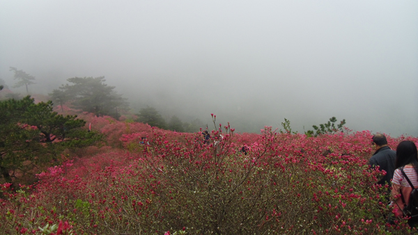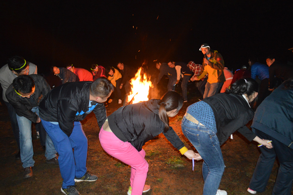 19日晚在歡快的篝火晚會中結(jié)束了一天的拓展訓(xùn)練,全體調(diào)整休息后于20日清早開始了登龜峰山賞杜鵑花活動。