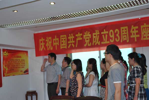 隨后黨支部書記閔超同志組織大家學習了習近平同志關(guān)于黨的群眾路線教育實踐活動的講話。勉勵大家堅定思想,緊密地團結(jié)群眾,凝聚力量,圍繞企業(yè)發(fā)展開展各項工作。各黨員同志結(jié)合自身工作、生活和思想實際積極發(fā)表自已的感言。會議最后,全體黨員重溫中國共產(chǎn)黨入黨誓詞,一同宣誓。會議在振奮人心的宣誓中落下帷幕。
