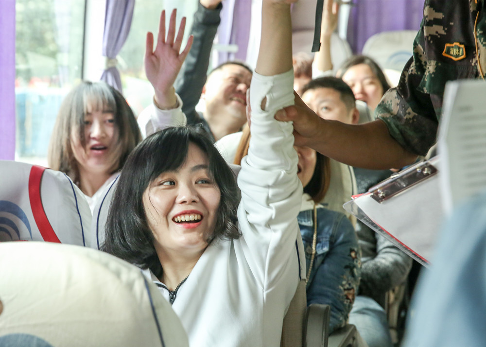 前往紅安的路途中,東信醫(yī)藥的家人們在車上開展知識競賽問答環(huán)節(jié),這個環(huán)節(jié)的知識點分為愛國、軍運、企業(yè)文化、產(chǎn)品知識四個部分,知識問答環(huán)節(jié)賺取的積分會影響到大家晚餐的質(zhì)量,每個人都積極參與,踴躍舉手,氣氛異?;钴S。